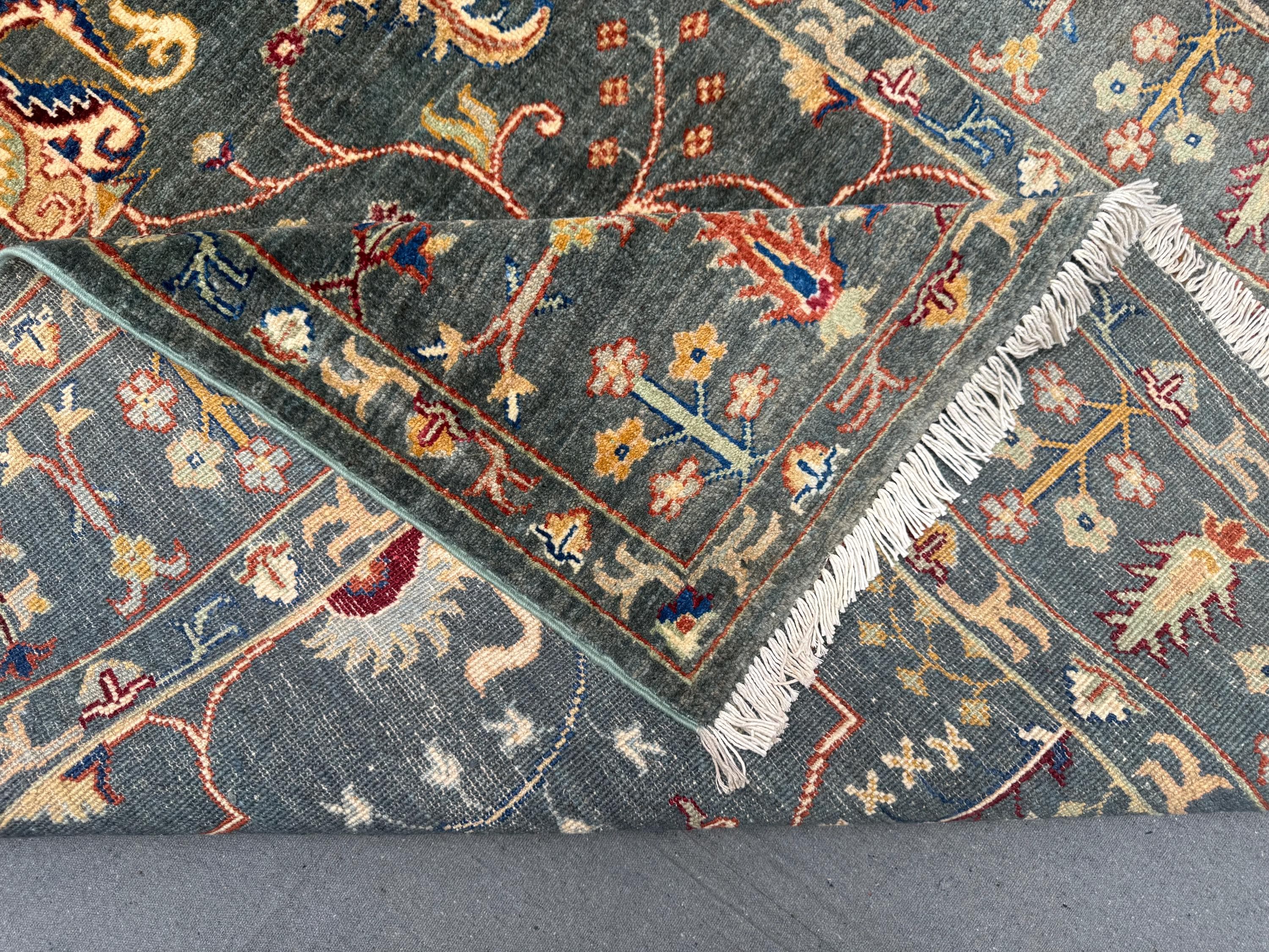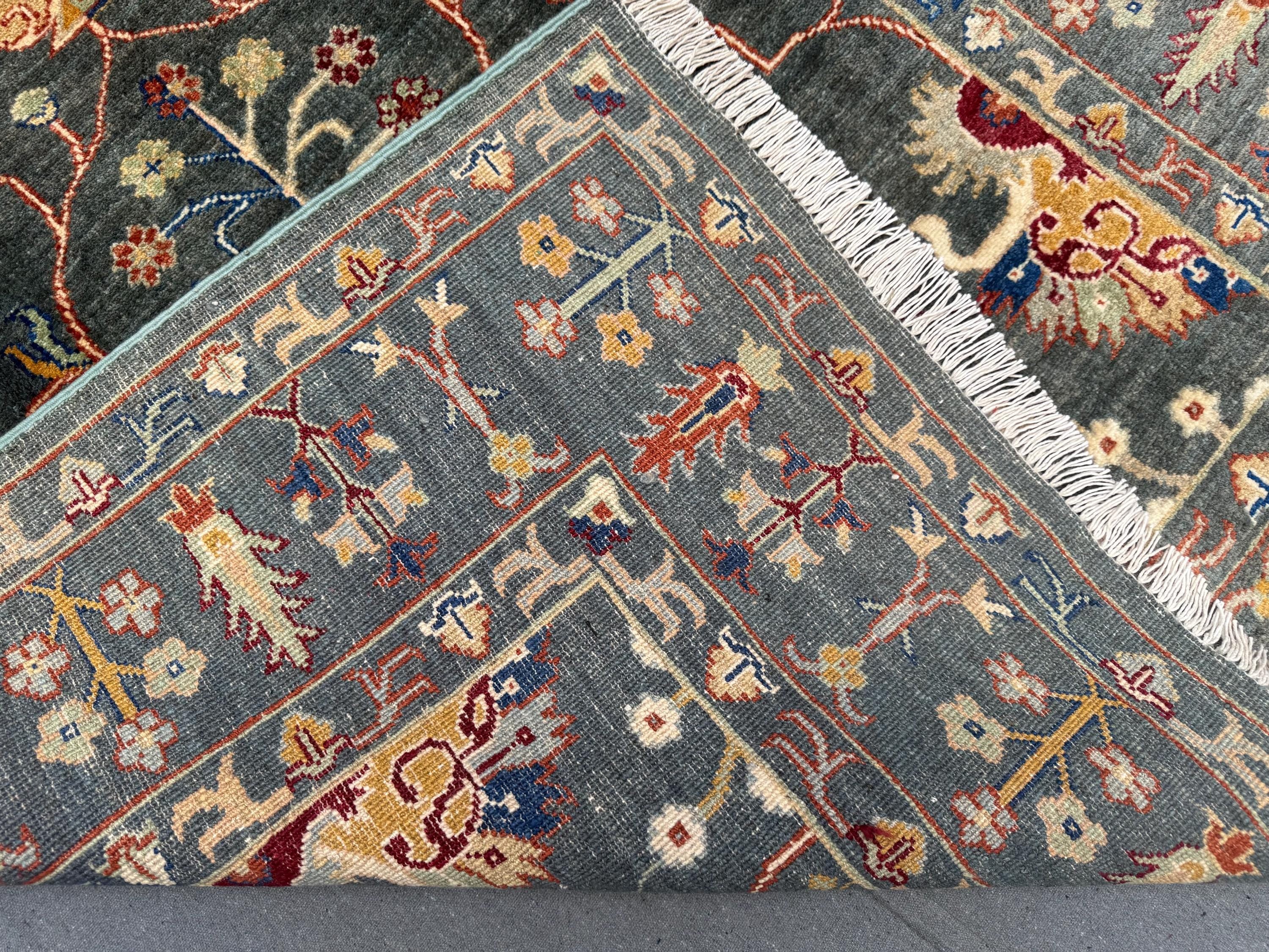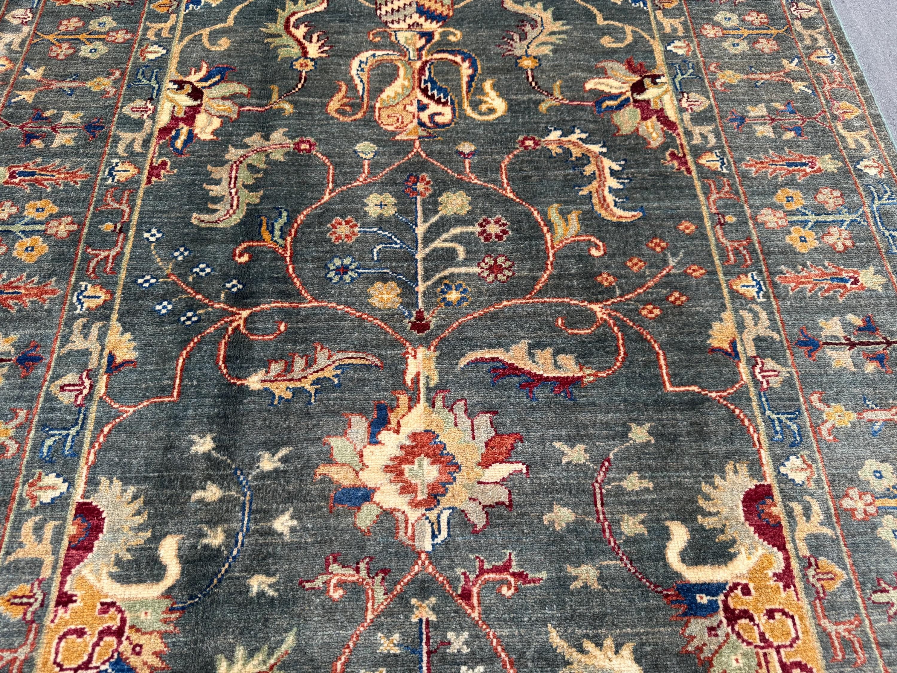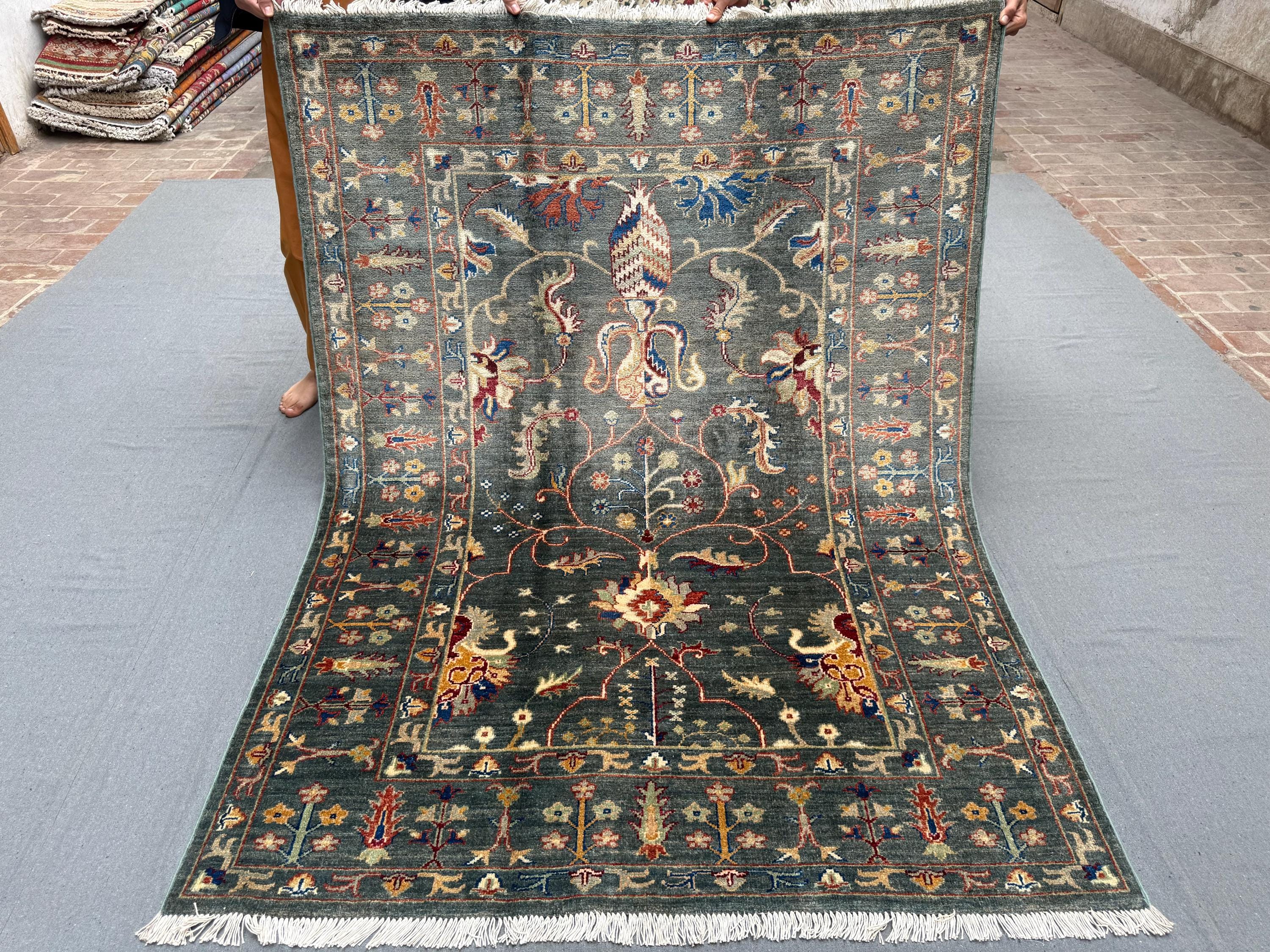 Sultani Area Rug 4x6, Dark Green Floral Wool Rug, Vintage Oriental Carpet, Persian Style Traditional Rug for Bedroom Entryway Office
