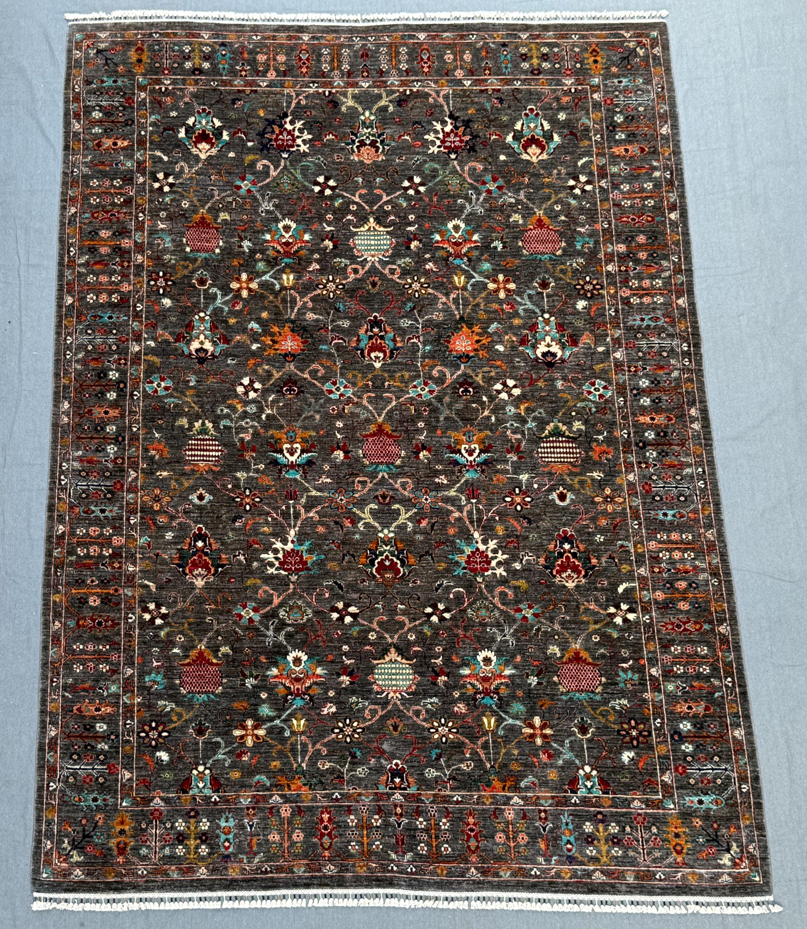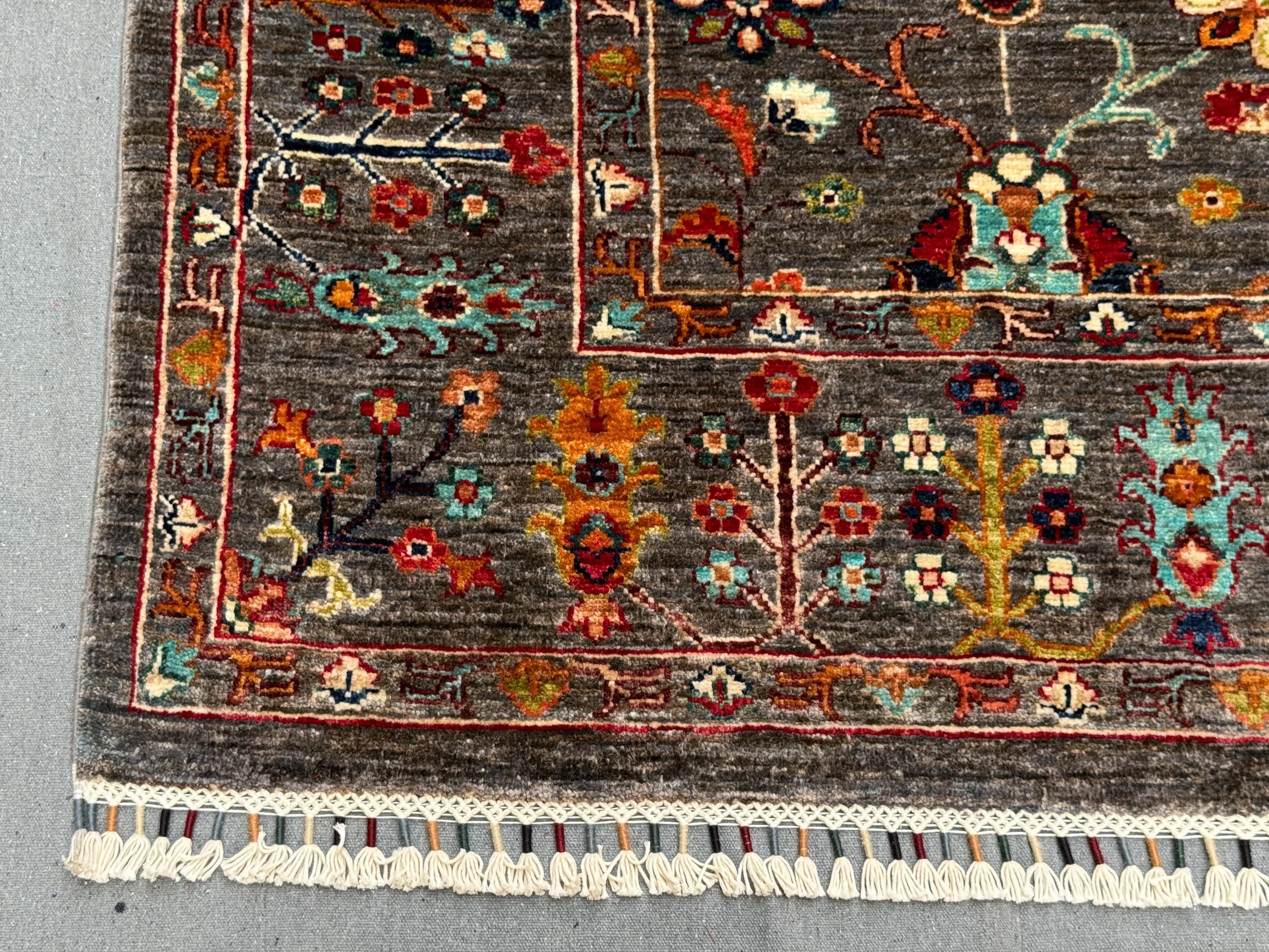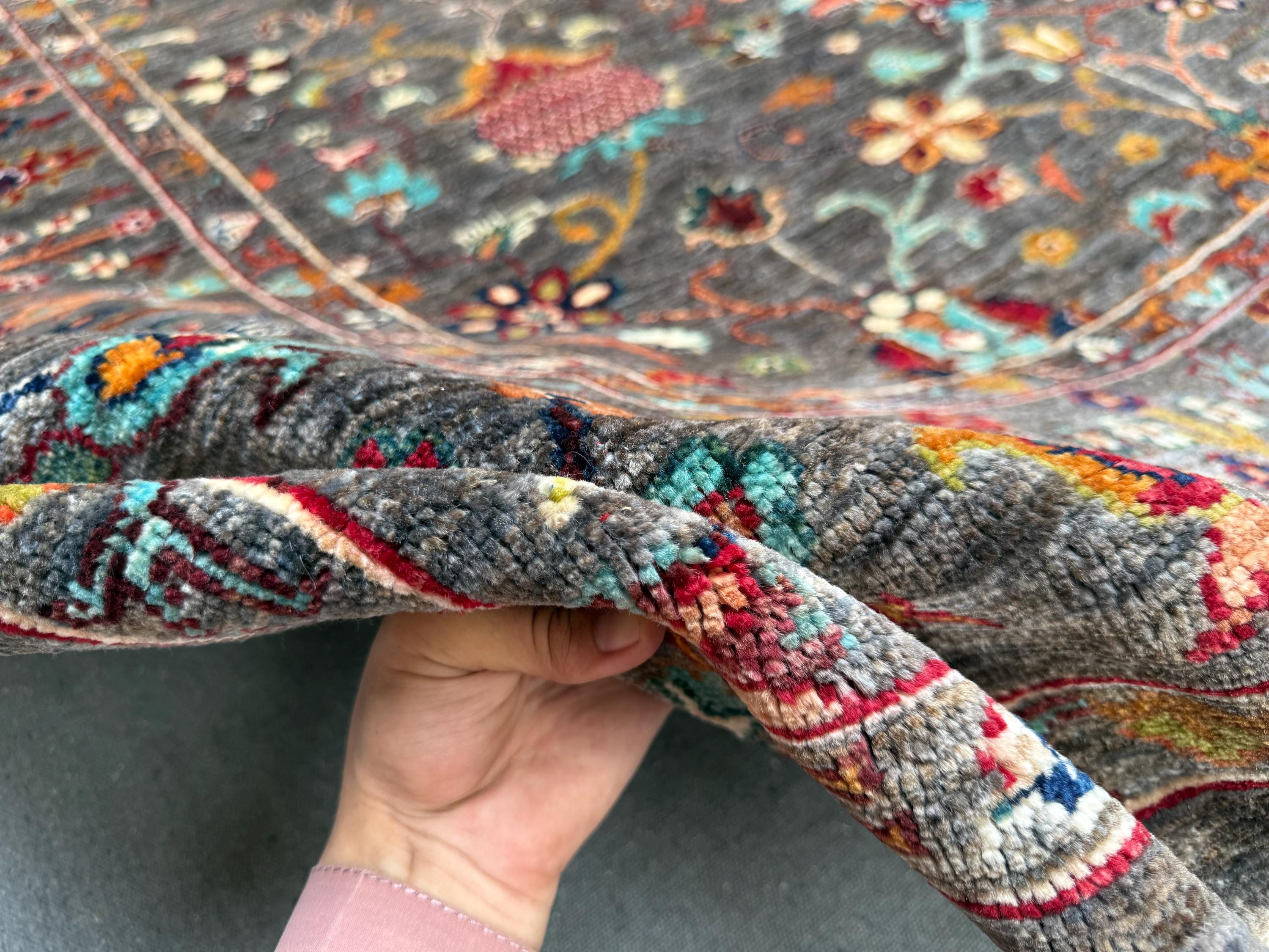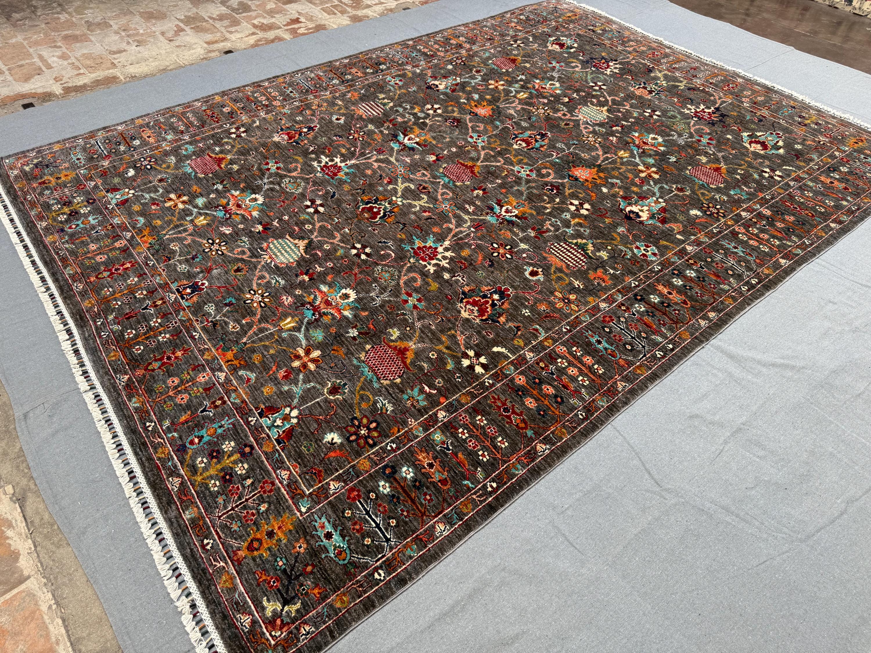Sultani Handmade Wool Rug 8x11 ft, Charcoal Gray Floral Carpet, Large Oriental Design, Luxury Hand-Knotted Traditional Area Rug Décor
