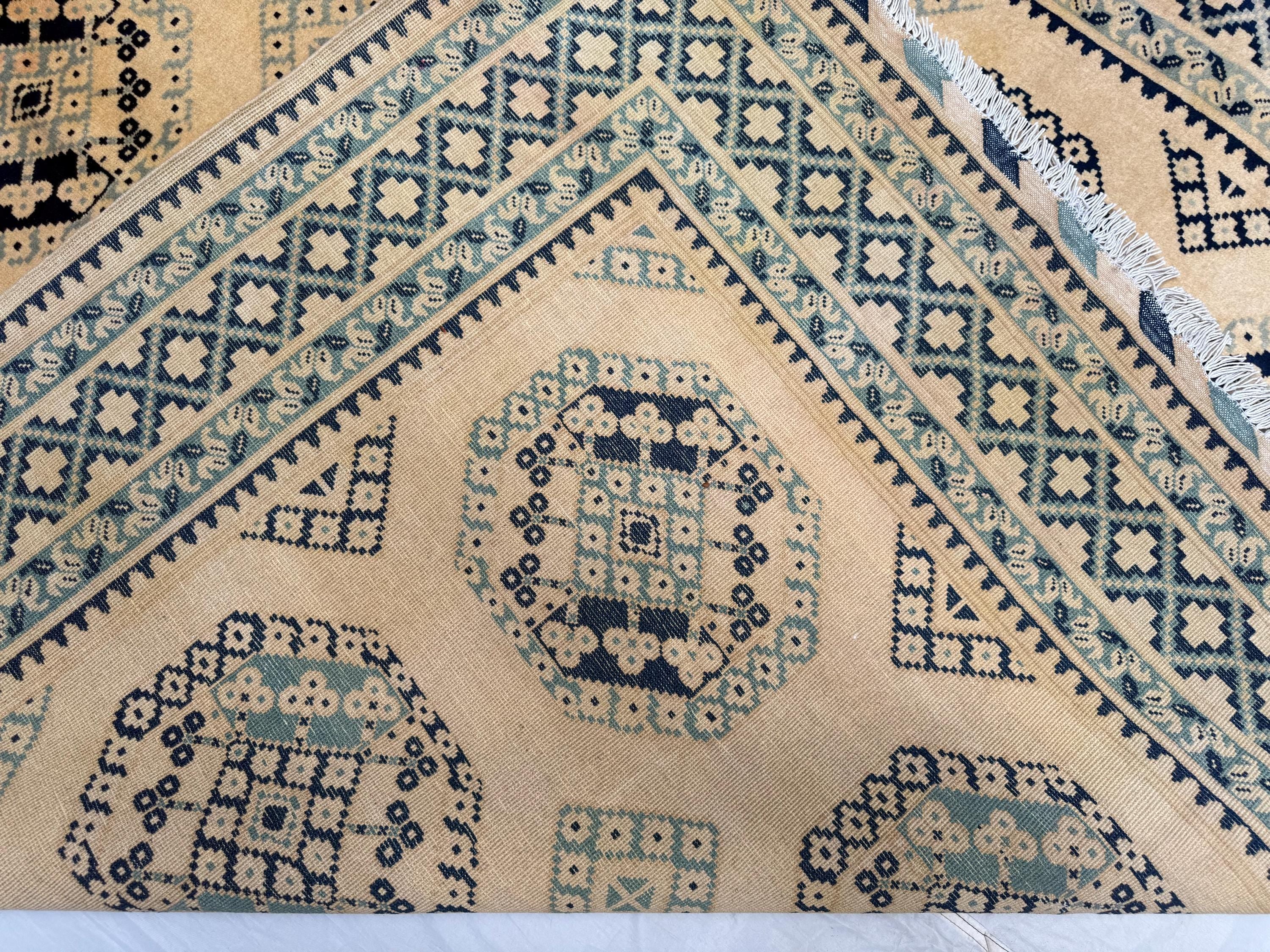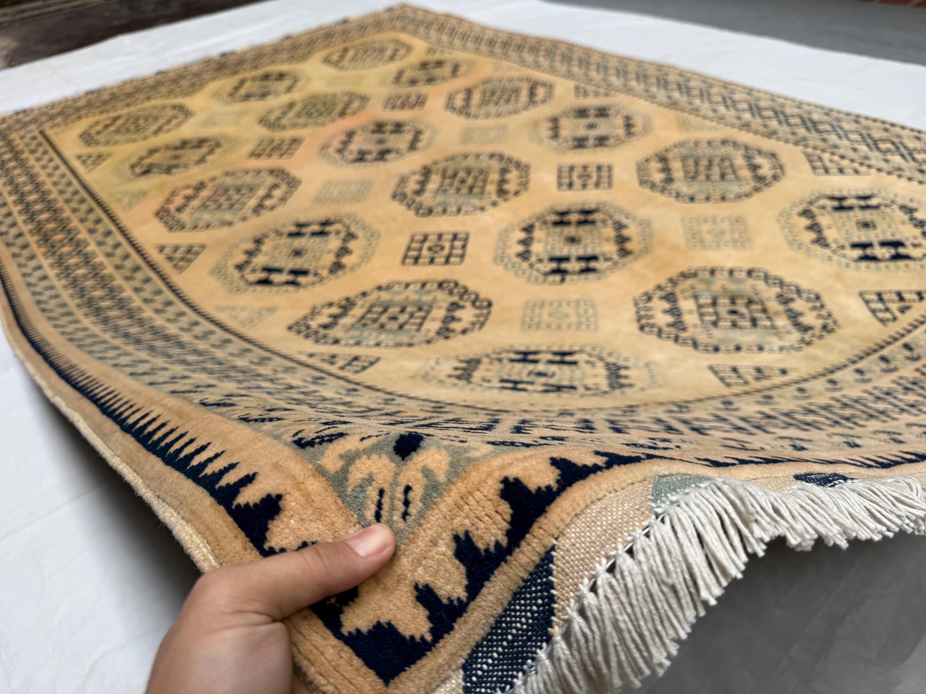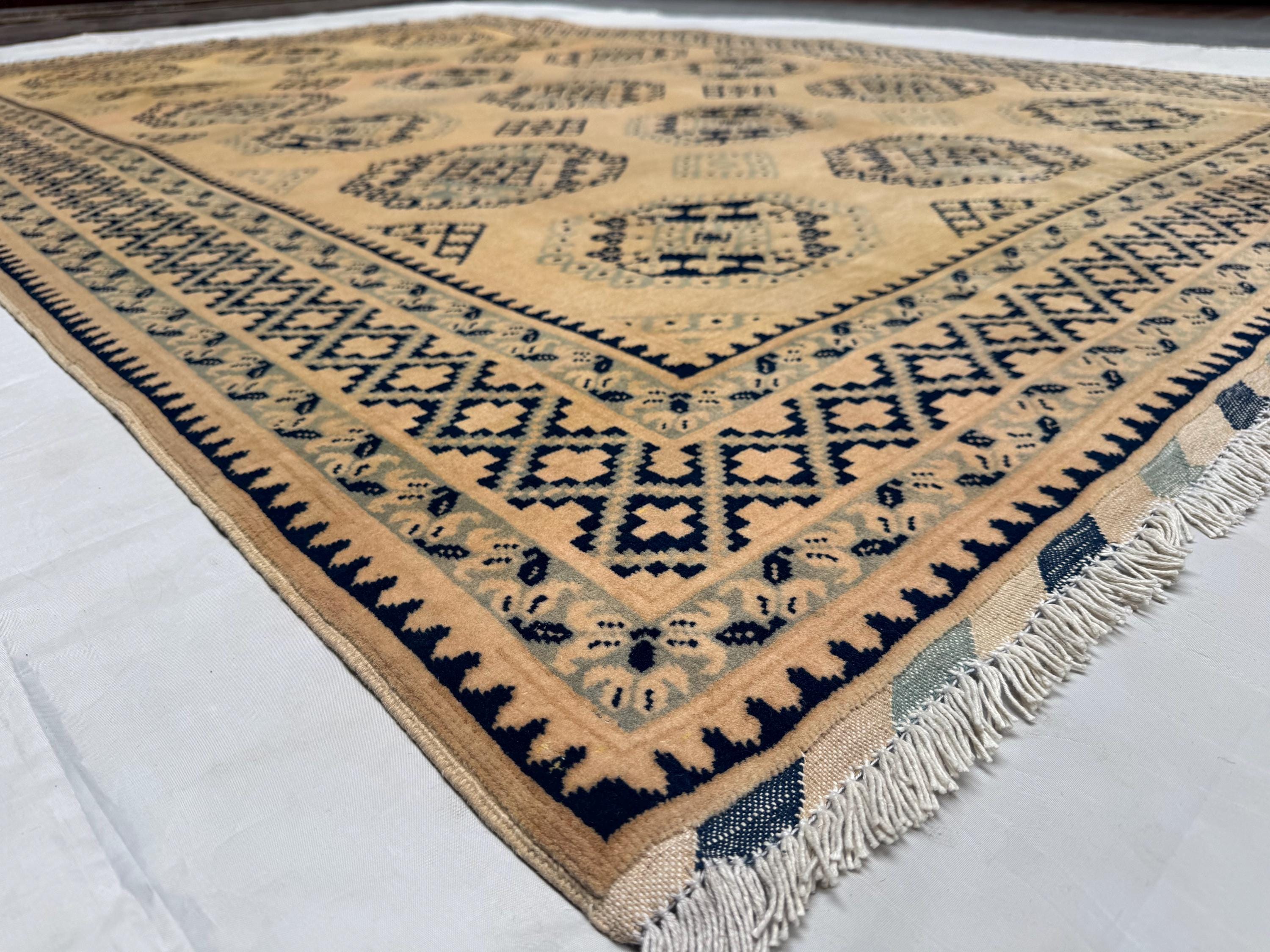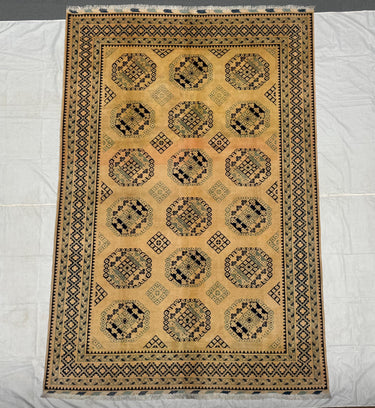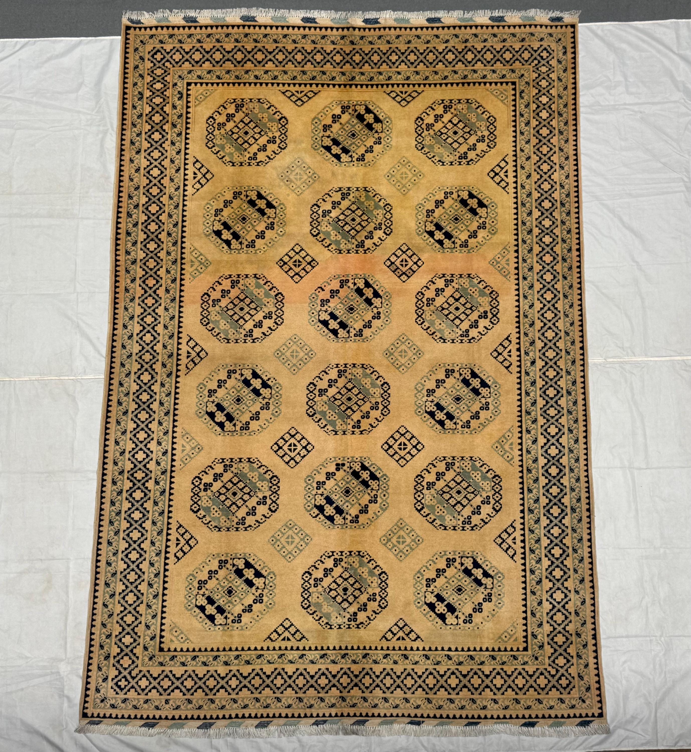 Turkoman Afghan Rug 6.7x9.8 ft Hand-Knotted Wool Beige Bokhara Carpet, Tribal Geometric Oriental Area Rug, Boho Home Décor