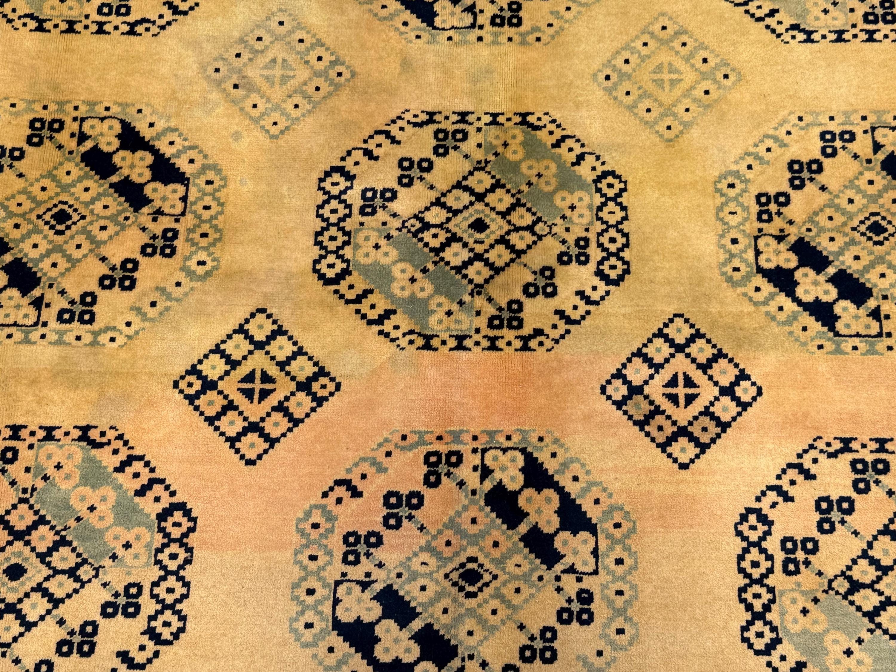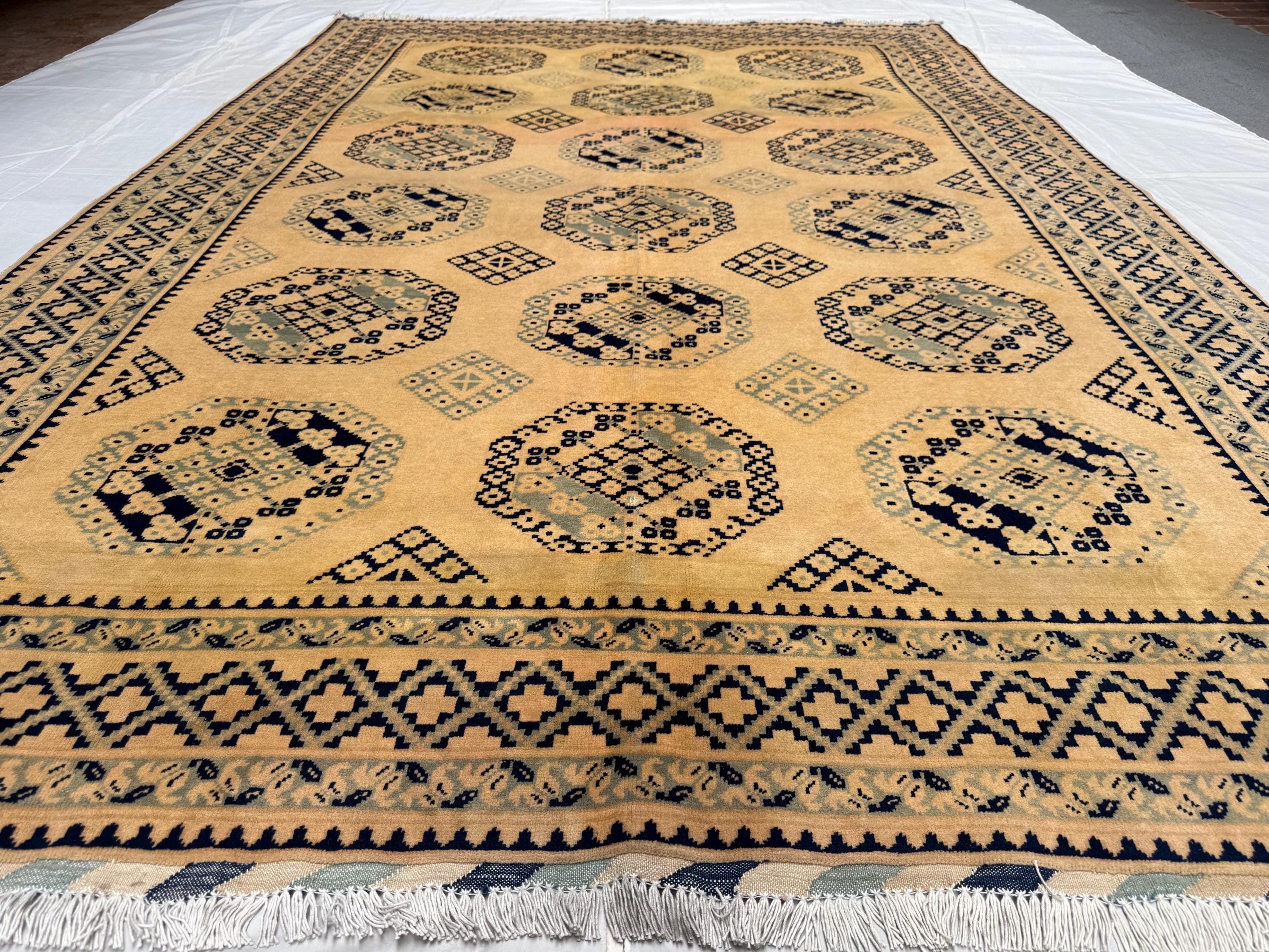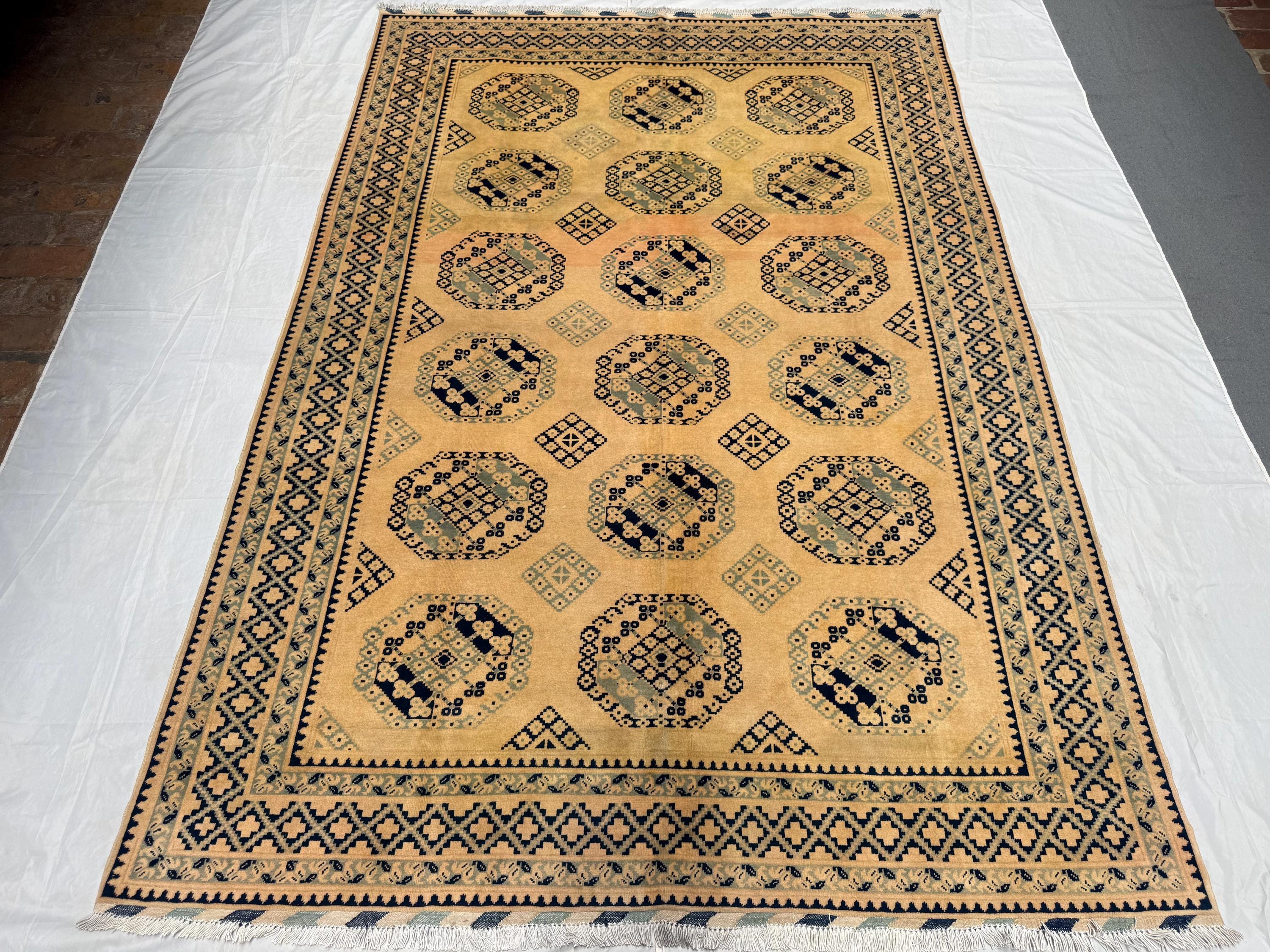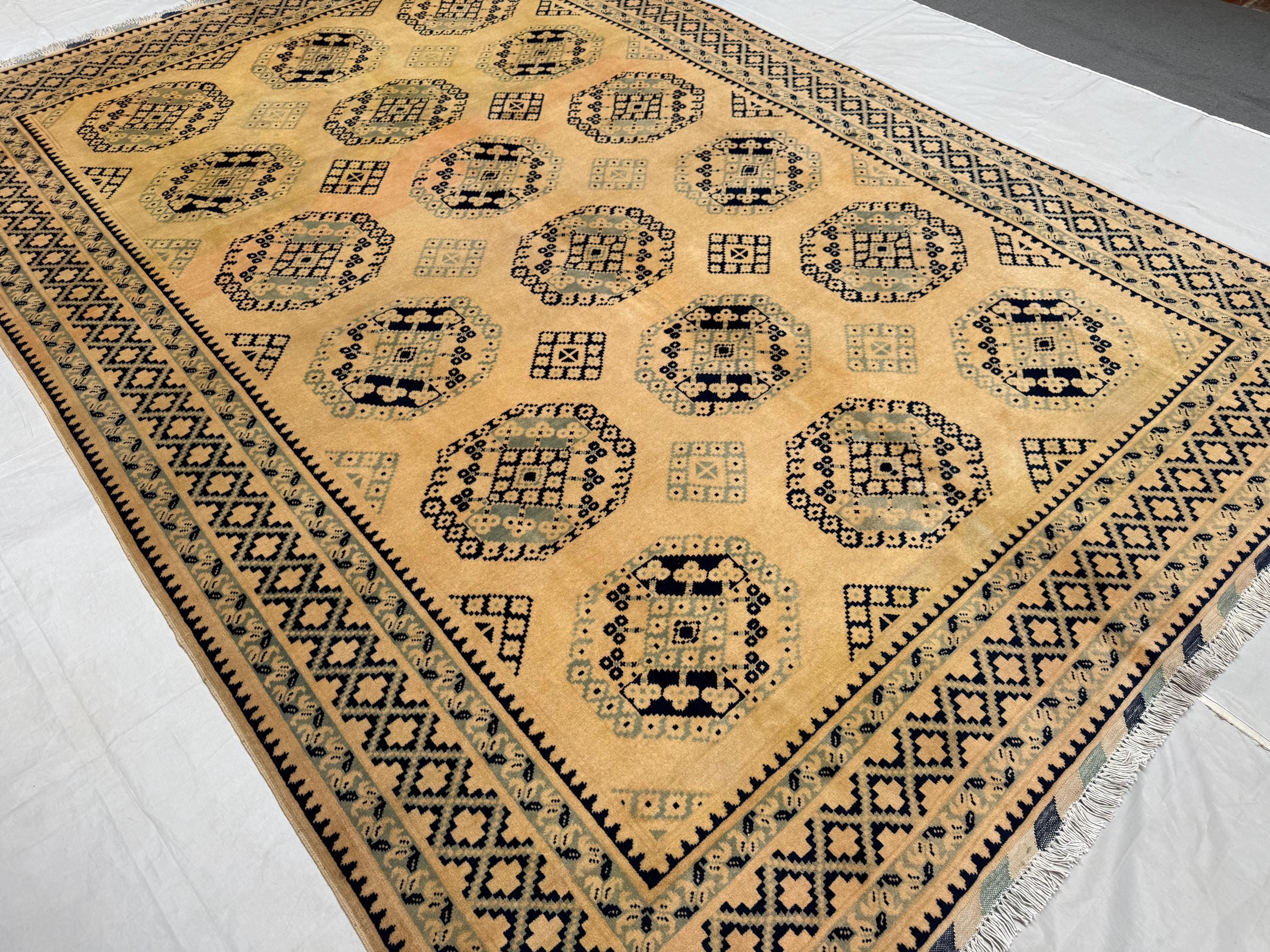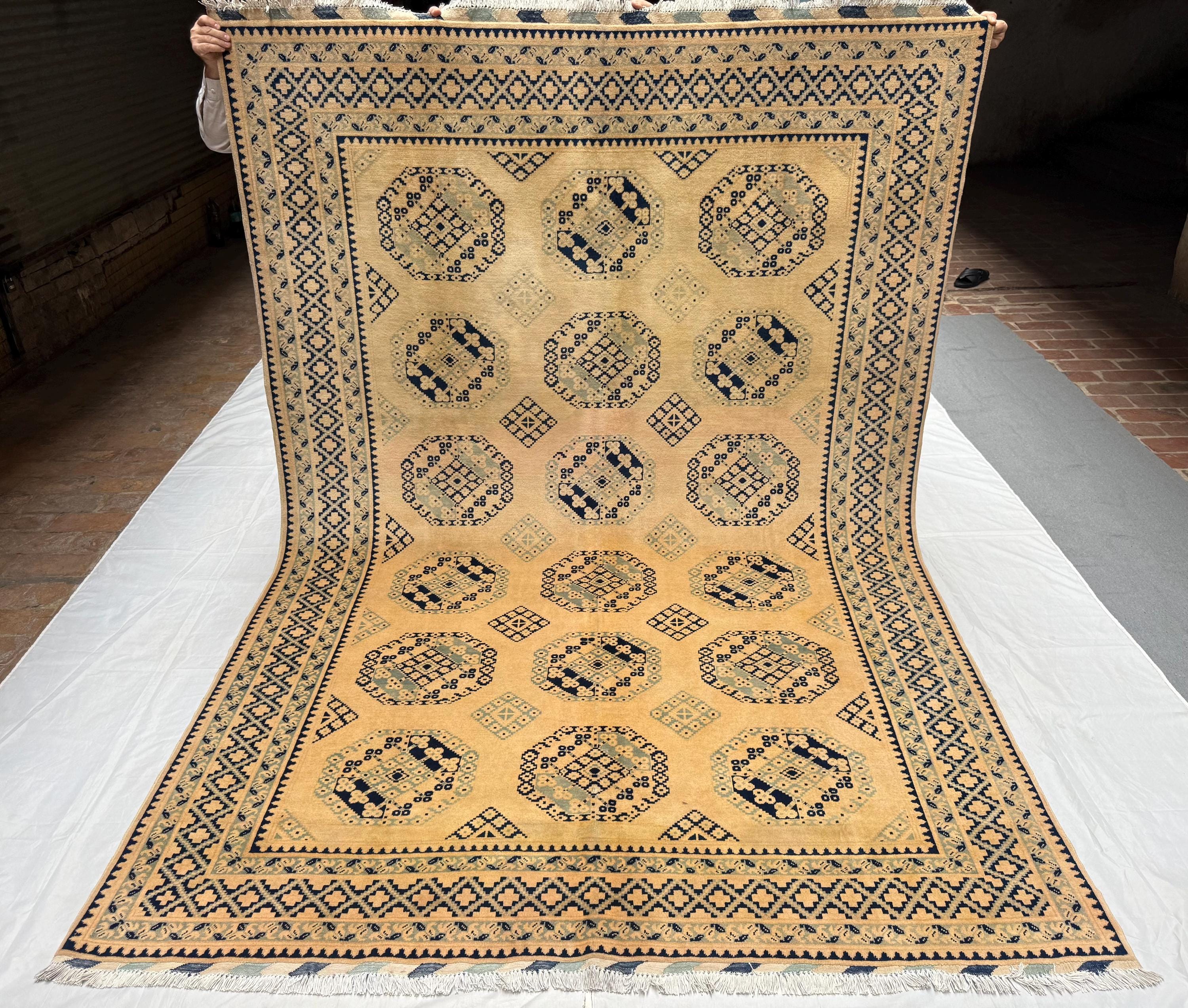 Turkoman Afghan Rug 6.7x9.8 ft Hand-Knotted Wool Beige Bokhara Carpet, Tribal Geometric Oriental Area Rug, Boho Home Décor